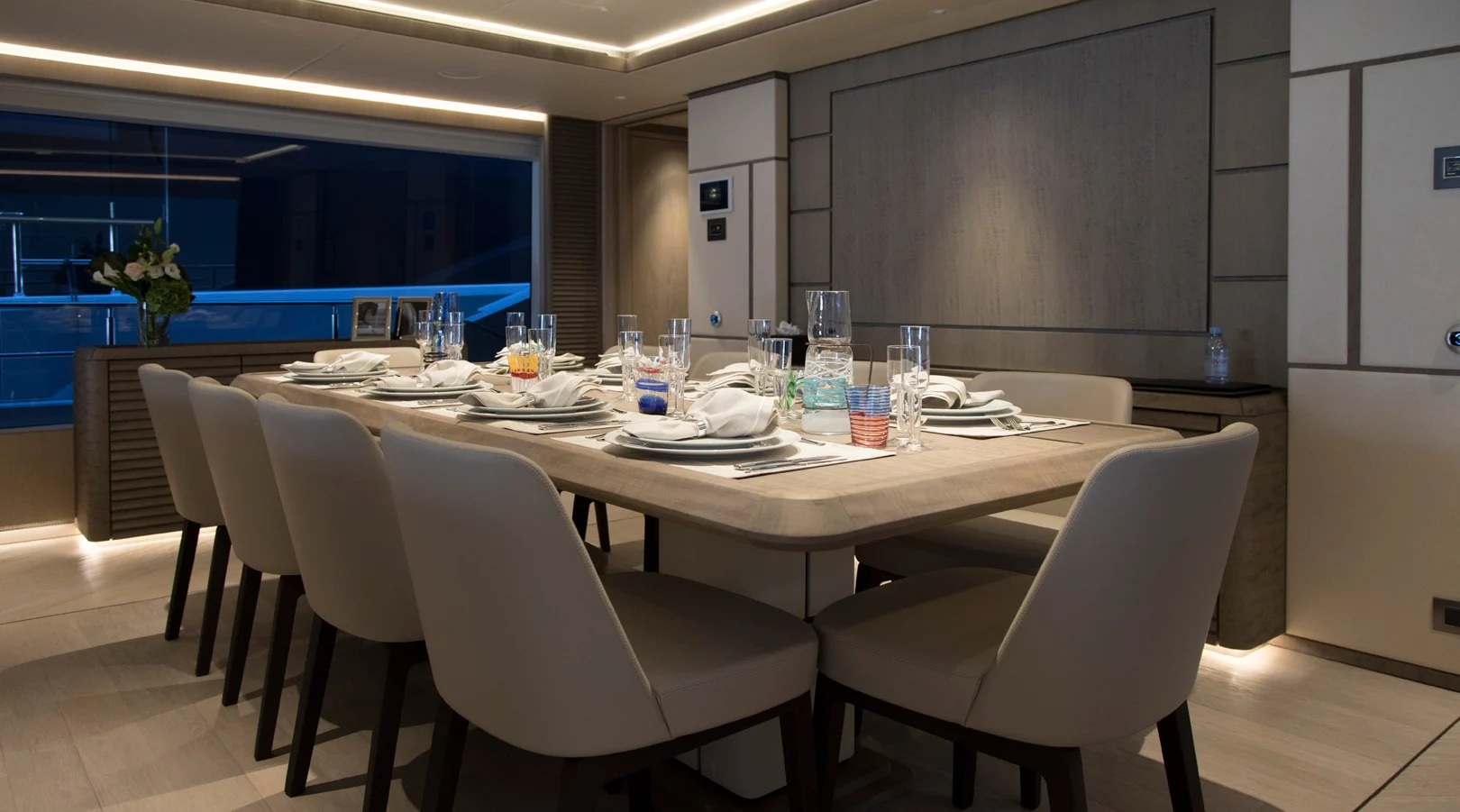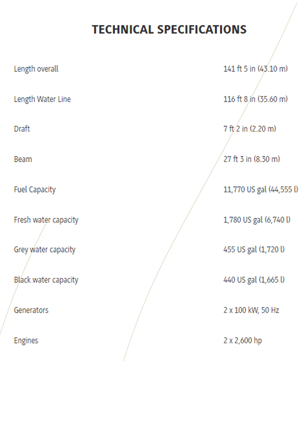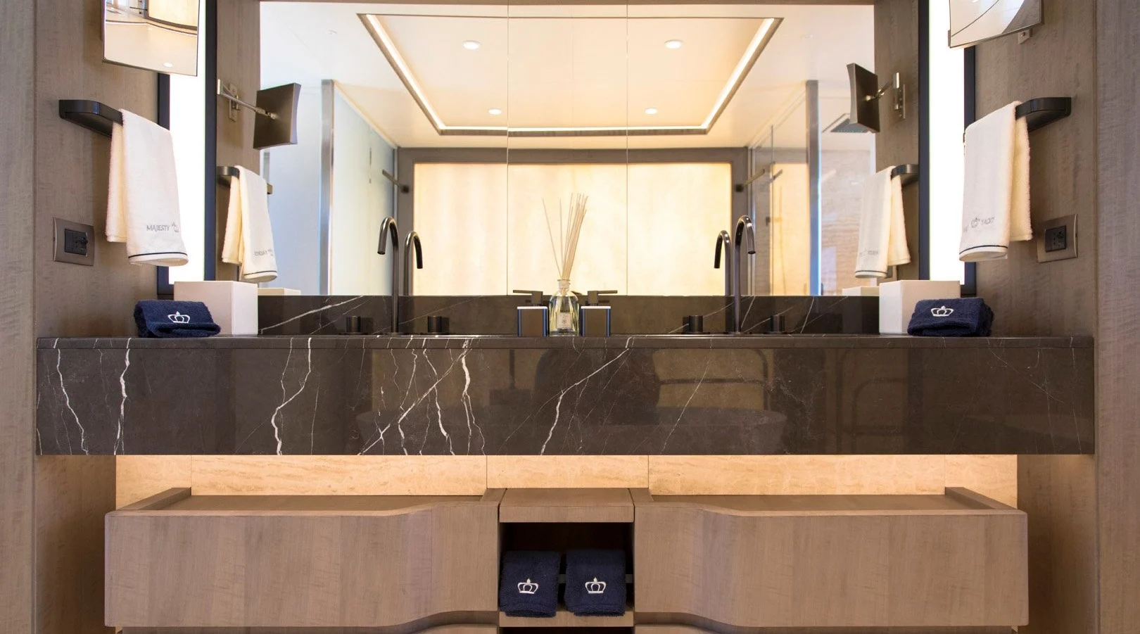 Manufactured at Gulf Craft’s fully integrated in-house production facility in the United Arab Emirates, the Majesty 120 is constructed using advanced composites such as GRP and carbon fibre. Measuring 123 feet (37.5 metres) and with a beam of 27.4 ft (8.4 metres), the superyacht is made of lightweight yet sturdy composite materials – allowing the Majesty 120 to effortlessly cruise low-draft areas, drawing just 2.1 metres of water. The unique engineering methods Gulf Craft apply, combined with the robust lightweight composite hull, making her the ideal vessel for shallow draft destinations such as the Caribbean and the Greek Islands.Now with three award titles to her name, - Winner of the ‘Motor Yacht 25-40 Metres’ at The International Yacht & Aviation Awards’, Boat International Design and Innovation’s ‘Eco Award’ & ‘Best Naval Architecture’ in the semi-displacement or planing motor yachts 35m - 41.99m - the Majesty 120 is one of Gulf Craft’s best-selling superyachts.