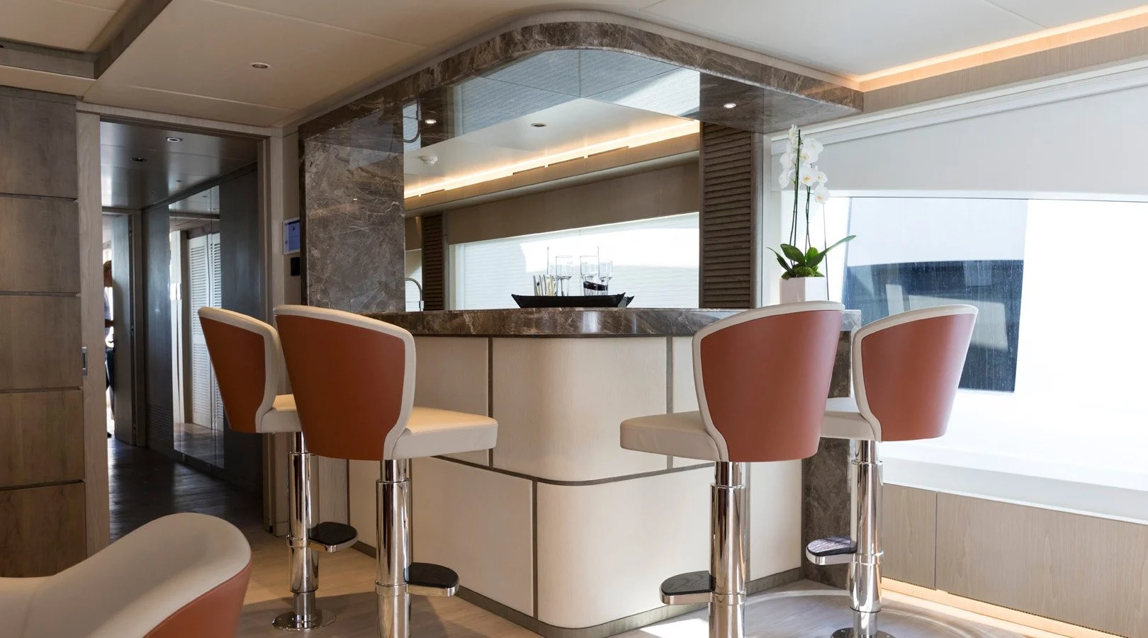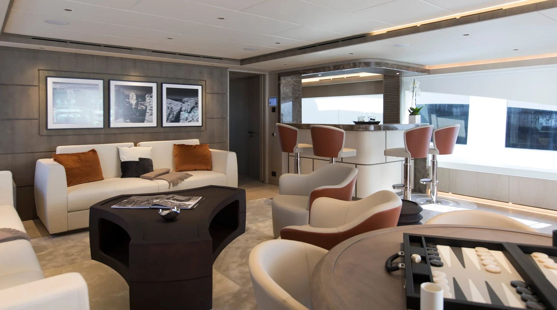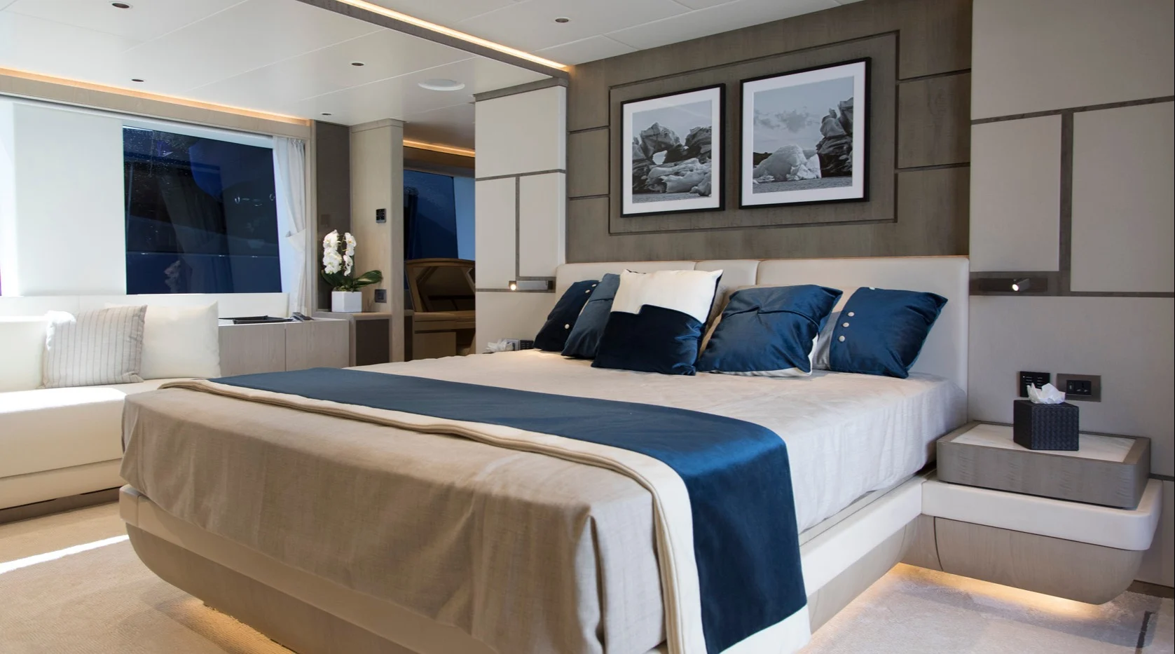 Manufactured at Gulf Craft’s fully integrated in-house production facility in the United Arab Emirates, the Majesty 120 is constructed using advanced composites such as GRP and carbon fibre. Measuring 123 feet (37.5 metres) and with a beam of 27.4 ft (8.4 metres), the superyacht is made of lightweight yet sturdy composite materials – allowing the Majesty 120 to effortlessly cruise low-draft areas, drawing just 2.1 metres of water. The unique engineering methods Gulf Craft apply, combined with the robust lightweight composite hull, making her the ideal vessel for shallow draft destinations such as the Caribbean and the Greek Islands.Now with three award titles to her name, - Winner of the ‘Motor Yacht 25-40 Metres’ at The International Yacht & Aviation Awards’, Boat International Design and Innovation’s ‘Eco Award’ & ‘Best Naval Architecture’ in the semi-displacement or planing motor yachts 35m - 41.99m - the Majesty 120 is one of Gulf Craft’s best-selling superyachts.