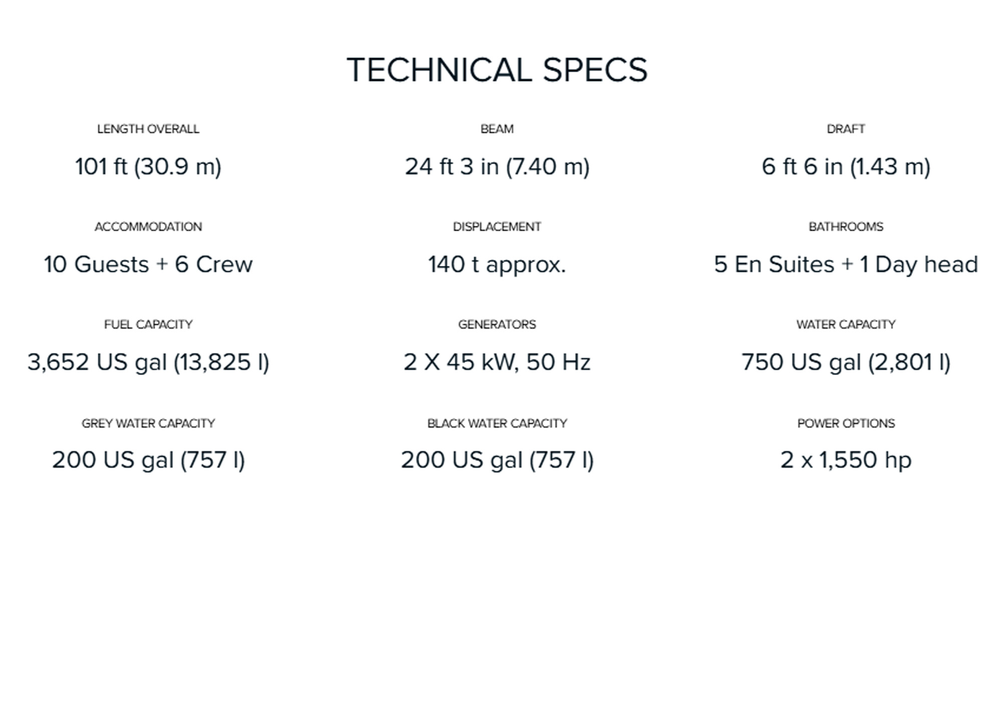 Enjoy breath-taking views from the upper deck forward lounge or bask on the flybridge sun loungers, experience delectable meals under the fully shaded aft cockpit or lay back for a family movie night at the main salon; Nomad 101 has environments to create treasured memories for a lifetime. Be it charter or ownership the she can handle all your yachting needs without any problems at all!