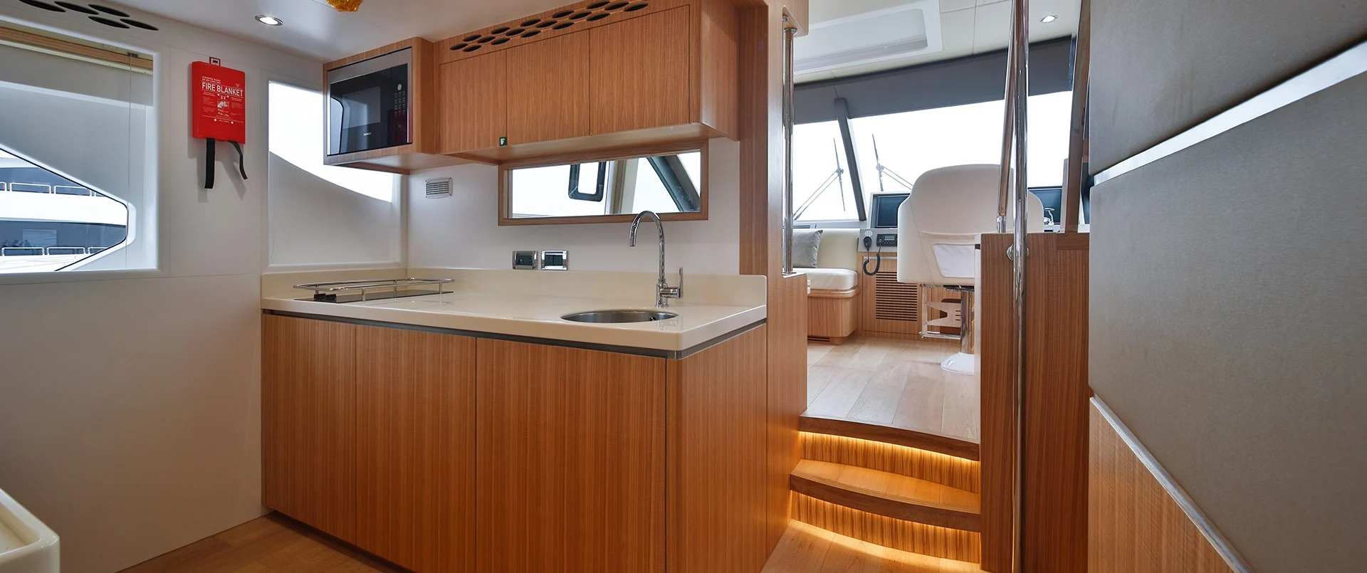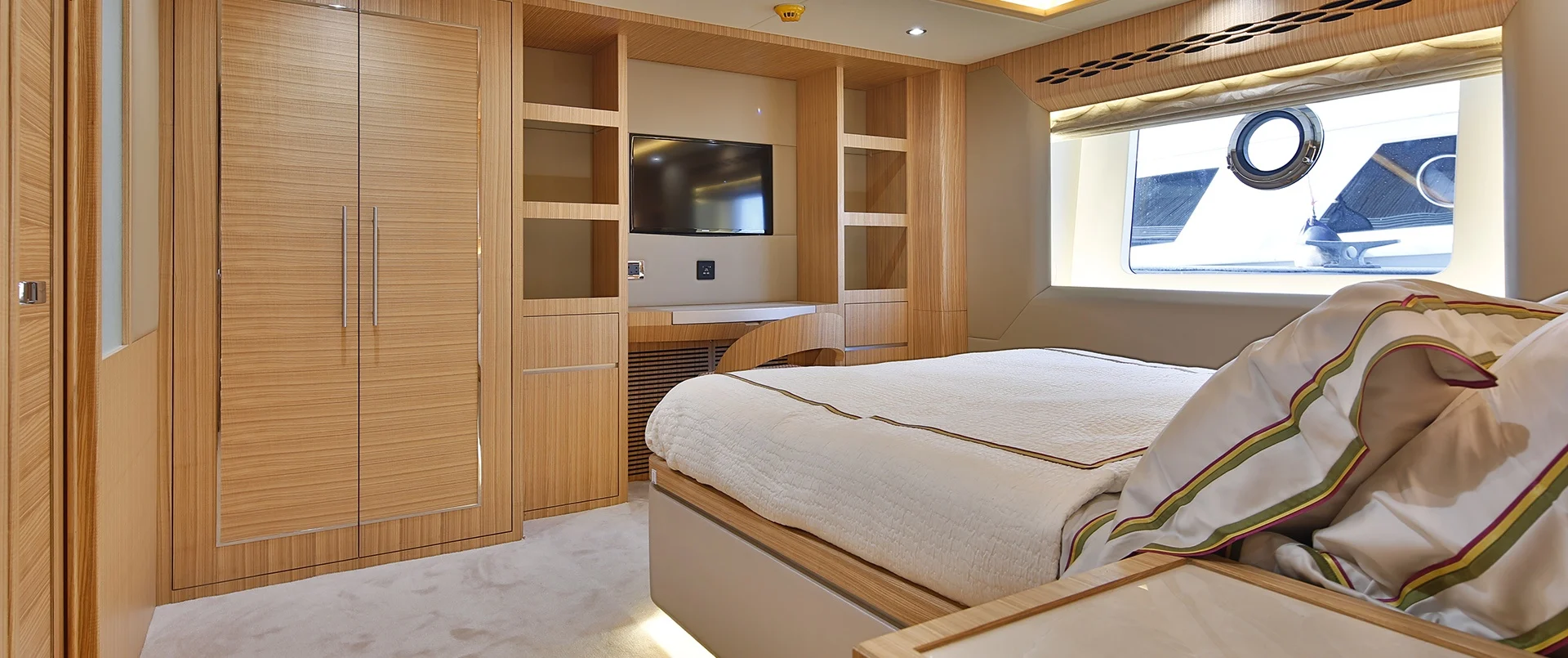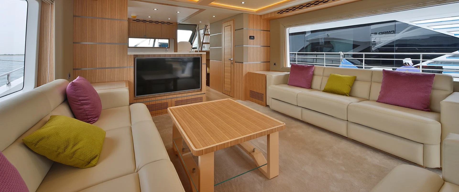 Powerful yet elegant, the Nomad 65 is versatile at every turn. With spacious above and below-deck quarters, this yacht combines on-board luxury with long range performance – and is the first hybrid hull from Gulf Craft. With three light and breezy guest cabins and two well-appointed crew cabins, the Nomad 65 feels ultra-roomy due to its free-flowing use of on-board space. Generously proportioned above and below deck quarters mean guests can spend as much time as they like out on the water, far away from the stresses of everyday life.